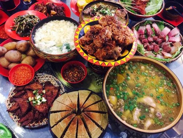 彝族的“坨坨肉”是火塘边的仪式,猪肉用柴火烤至金黄,手撕成块,蘸上椒盐,粗犷中透着对自然的敬畏。这道菜不仅是味觉的享受,更是“彝族年”祭祀中不可或缺的符号,承载着族群对丰收的感恩。